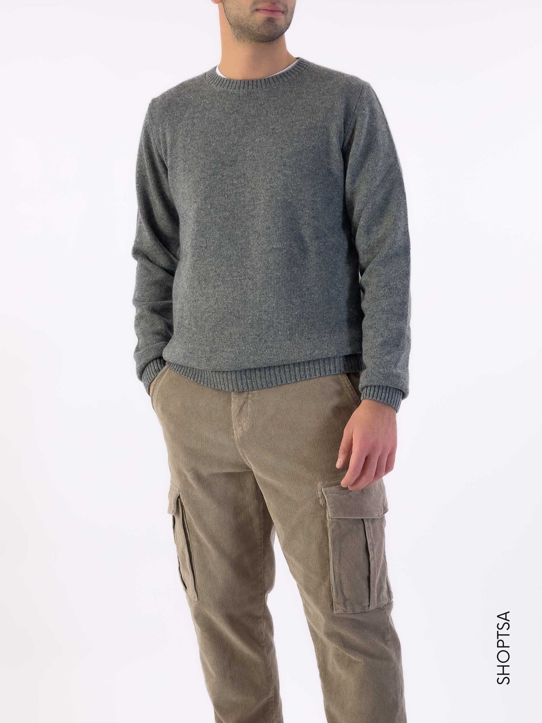 Maglione girocollo in misto lana pettinata Profonde costine al fondo e nel polso Colore brillante...