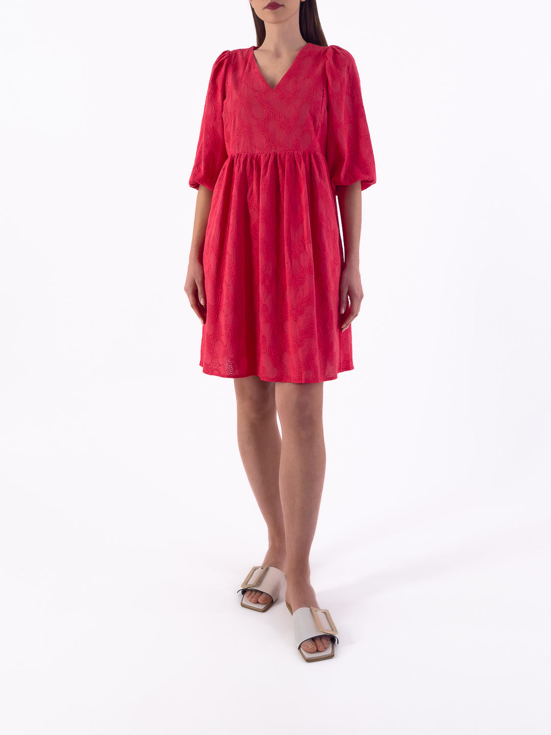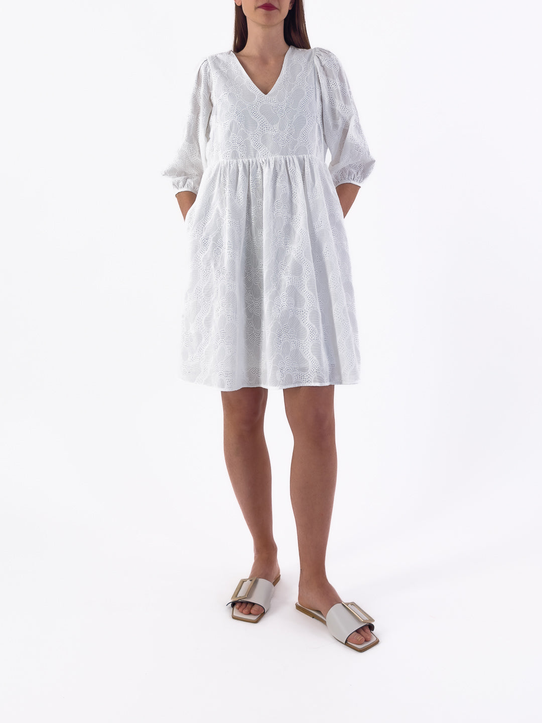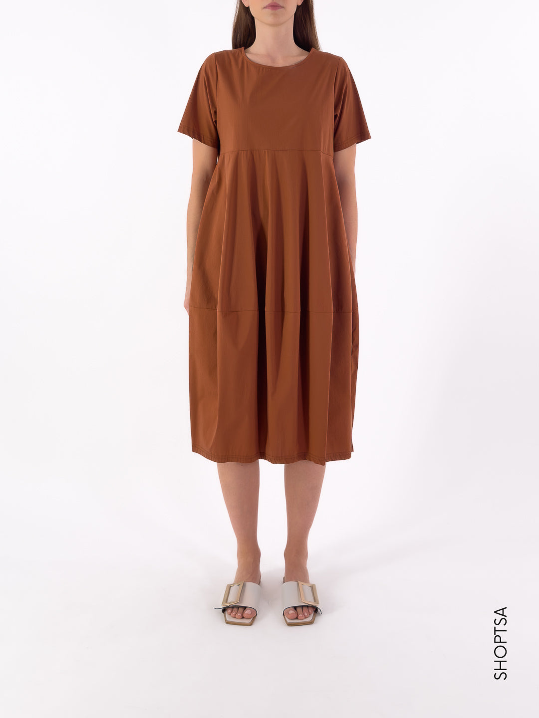 Abito in cotone mezza manica Modello girocollo Tasche laterali Modello con gonna a palloncino Composizione...