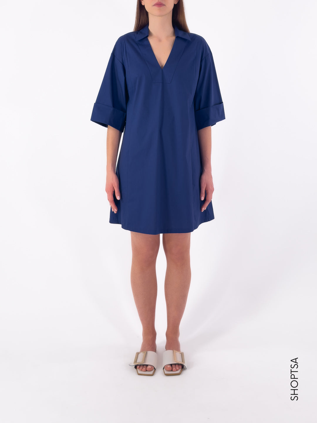 Abito corto in popeline di cotone leggermente stretch Modello corto linea dritta Scollatura a V...