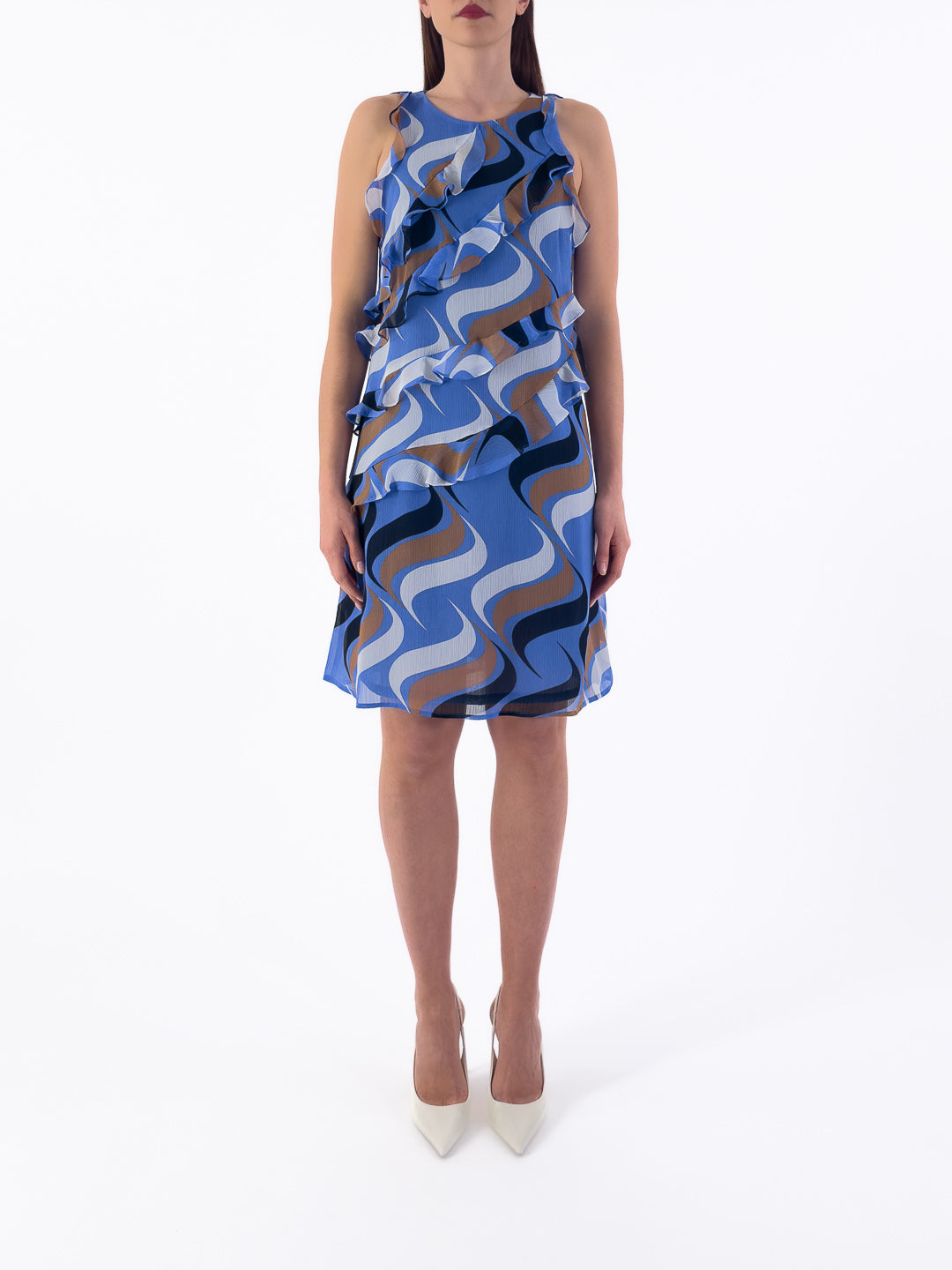 Abito corto a fantasia in creponne Modello smanicato Fantasia geometrica con volant Chiusura con zip...