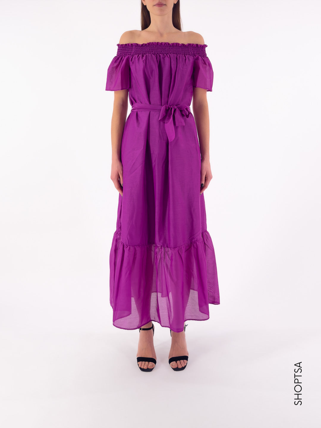 Abito lungo in mussola di cotone e seta Scollo off the shoulder Elastico nella scollatura...