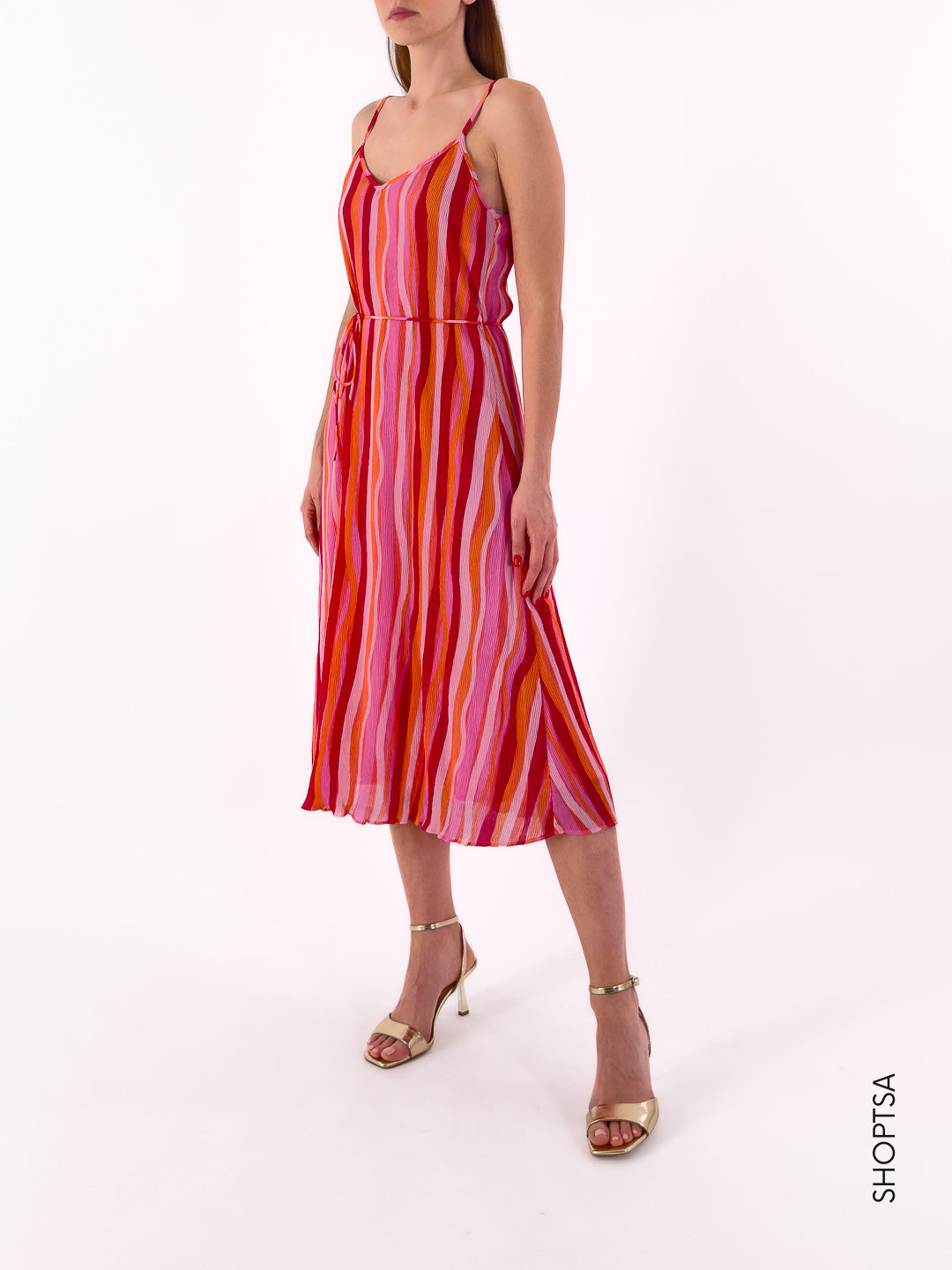 Abito a righe in crepe Modello midi con spallina sottile Cinturina in vita Spalline regolabili...