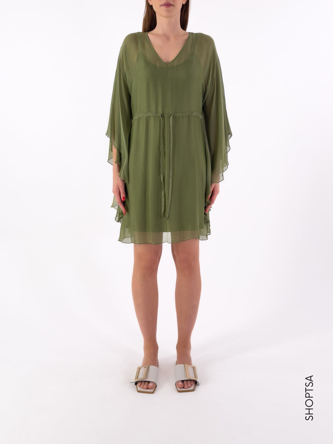 Abito raffinato in raso di misto seta e viscosa Manica corta e ampia Realizzato con...