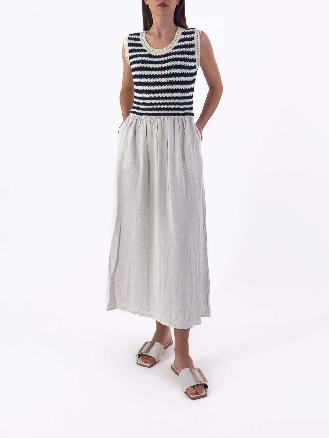 Abito crochet con gonna in misto lino Modello girocollo in maglia crochet Tasche laterali Foderato...