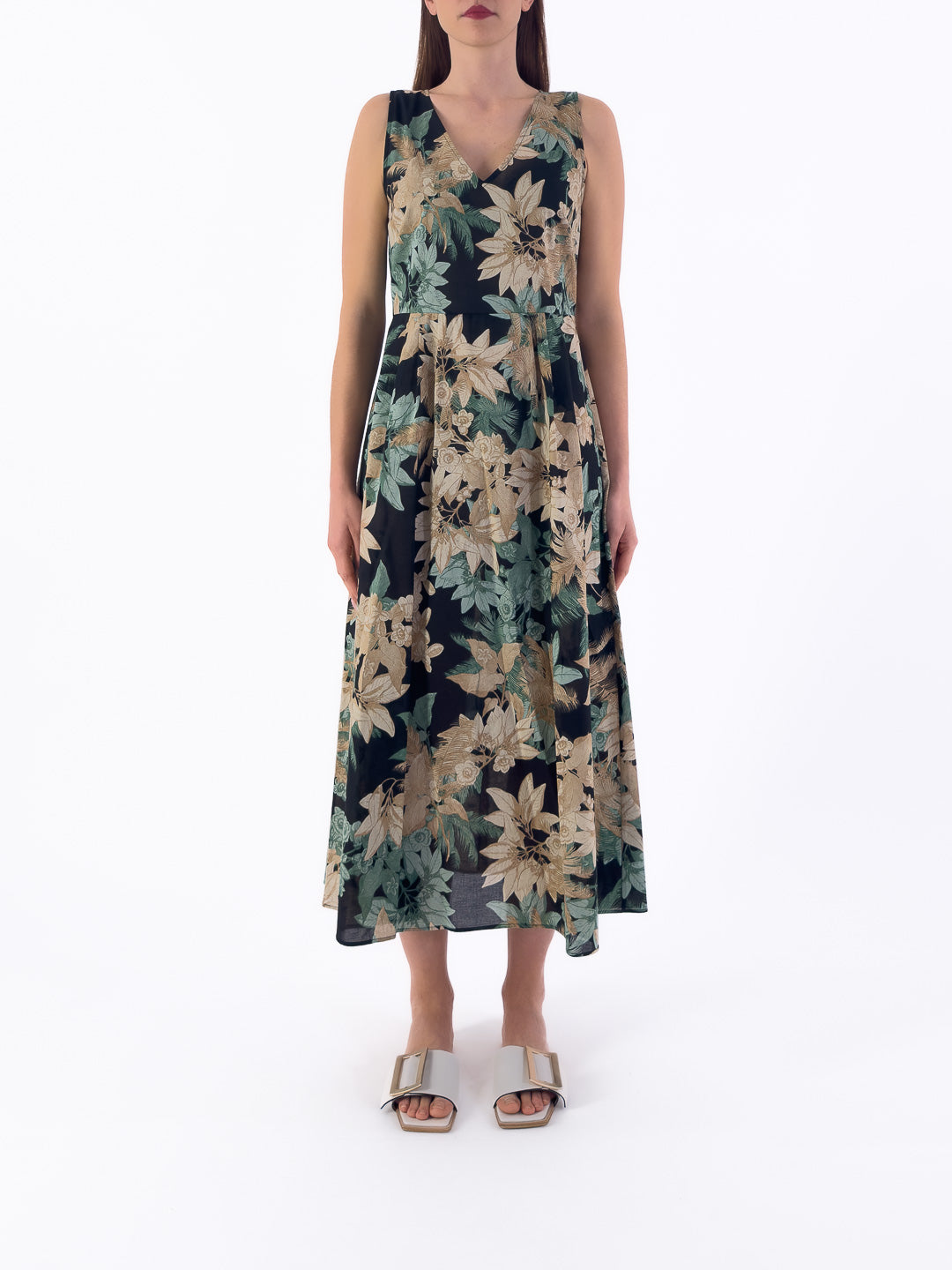 Abitino estivo a fantasia jungle Modello scollato a V Tagliato in vita con gonna svasata...