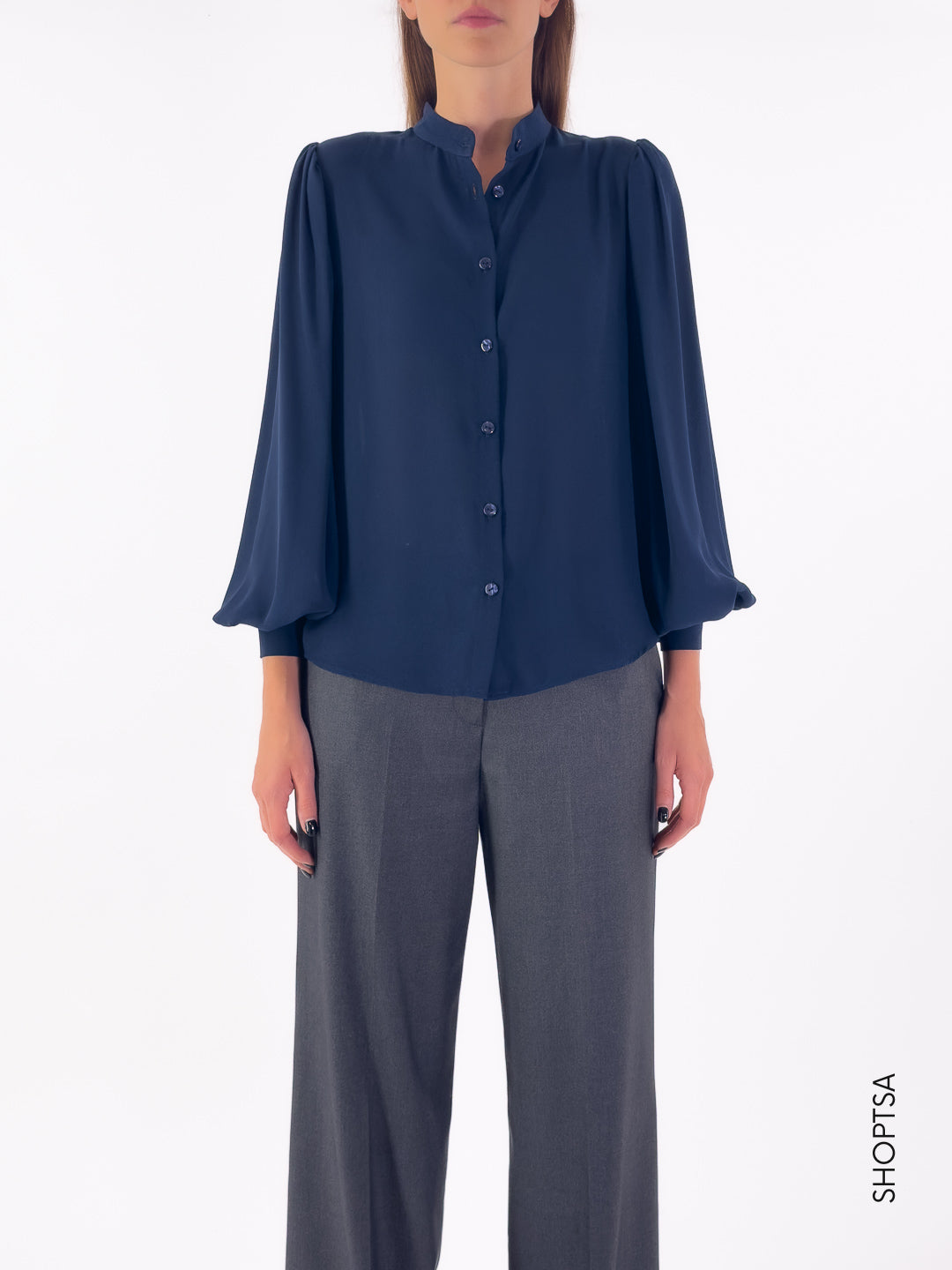 Camicia con collo coreana Manica molto ampia con polsino Chiusura con bottoncini Composizione: 100% poliestere...