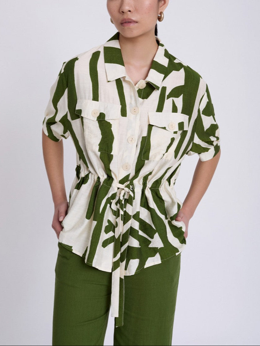 Camicia realizzata cotone leggero naturalmente traspirante, presenta una stampa geometrica distintiva. La trama fluida e...