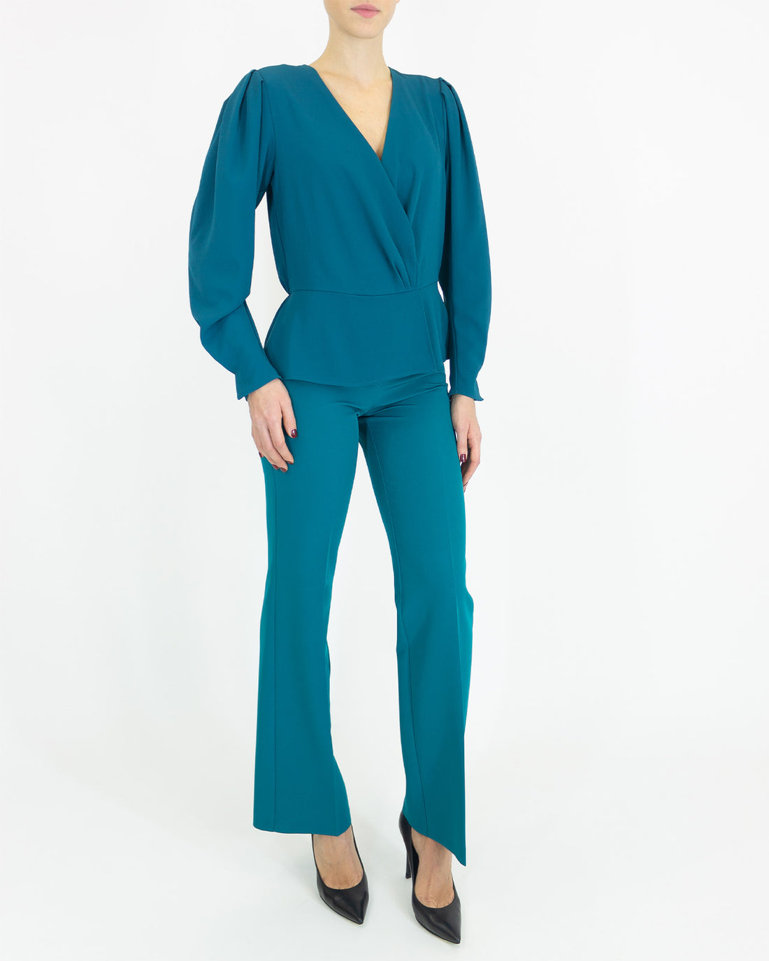 Camicetta elegante in crepe, arricciata in vita con scollatura incrociata a V sul davanti. Manica...