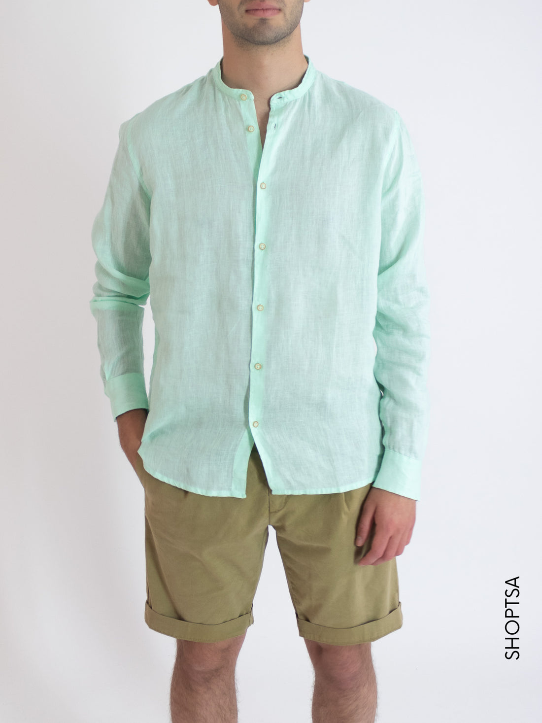 Camicia in morbido misto lino e cotone lavato Colletto aperto alla cubana Vestibilità: regular Chiusura...