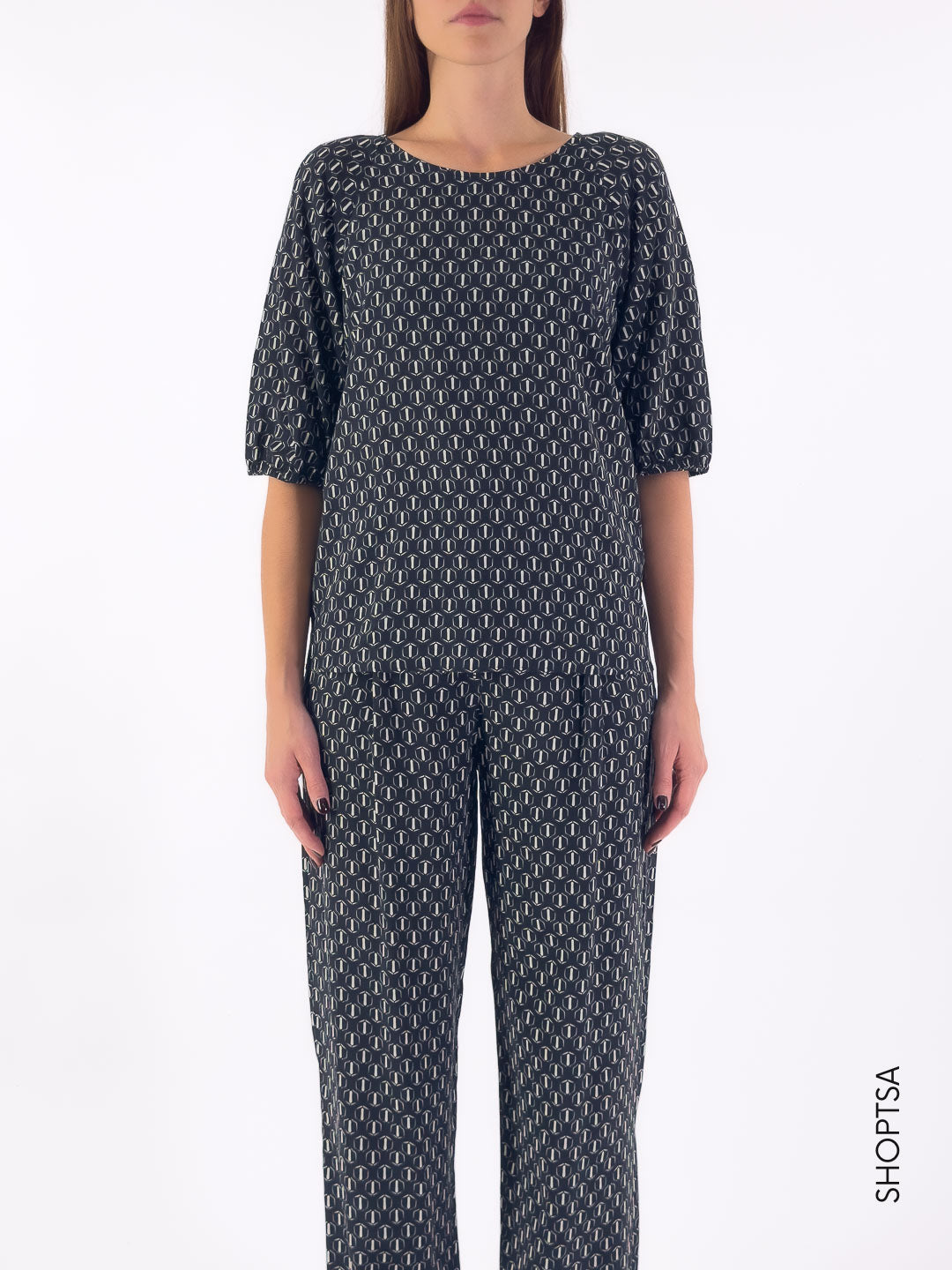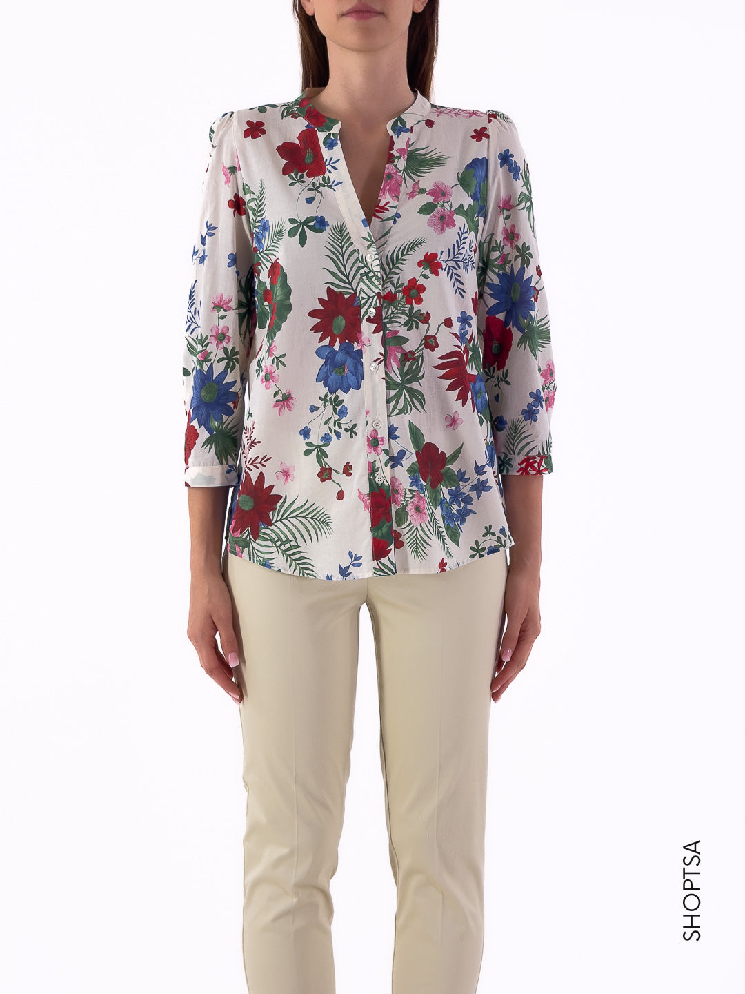 Blusa a fantasia mezza manica Realizzata in viscosa Elastico al fondo della manica Modello girocollo...
