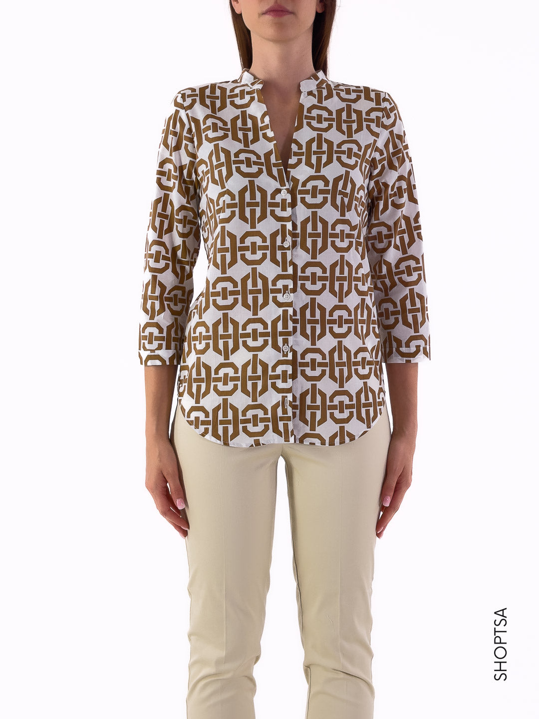 Camicia a fantasia in crepe di viscosa Modello con manica raglan, perfetta per chi ha...