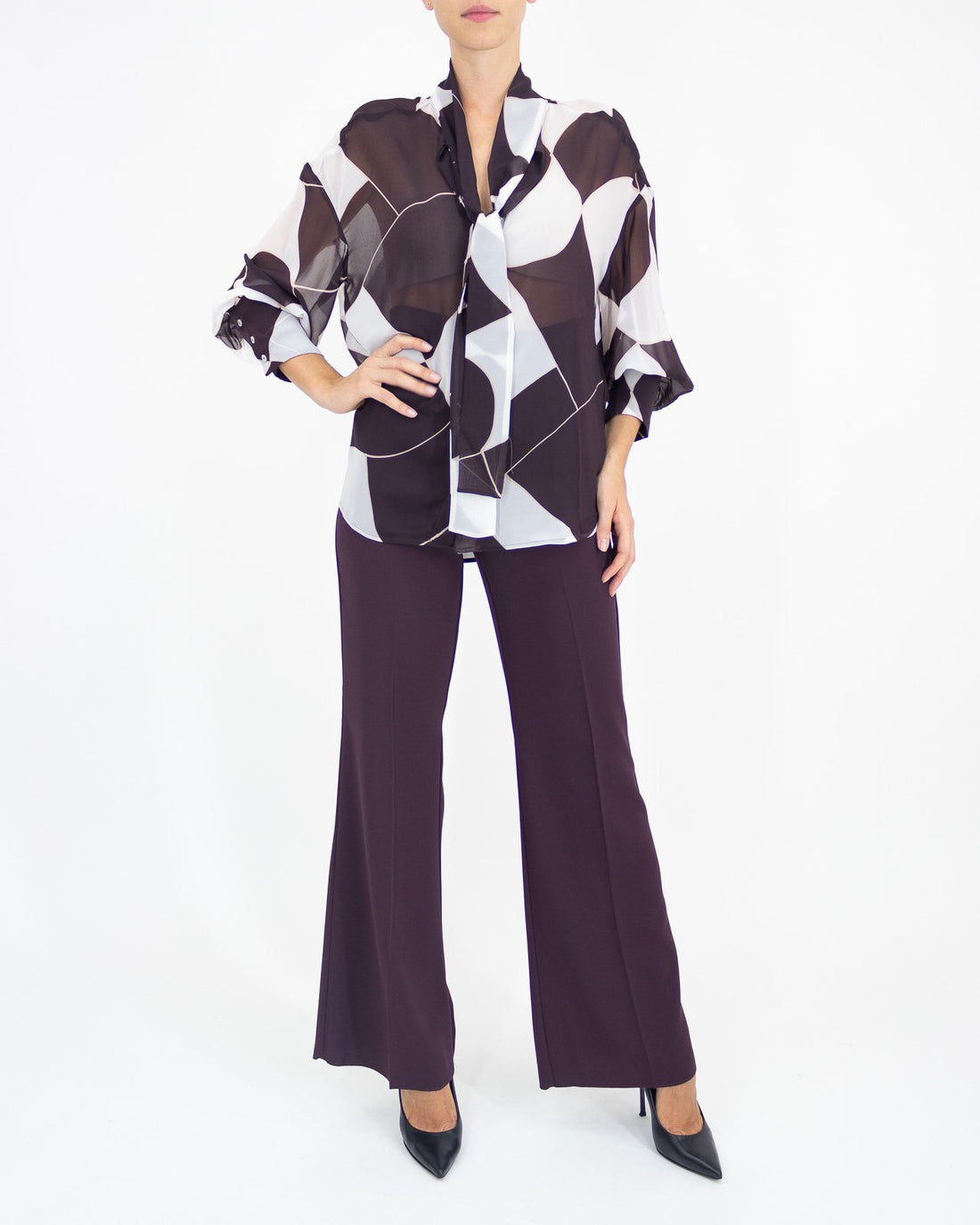 Camicia donna in georgette a fantasia rombi bordeaux. Maniche ampie con polsino alto a tre...