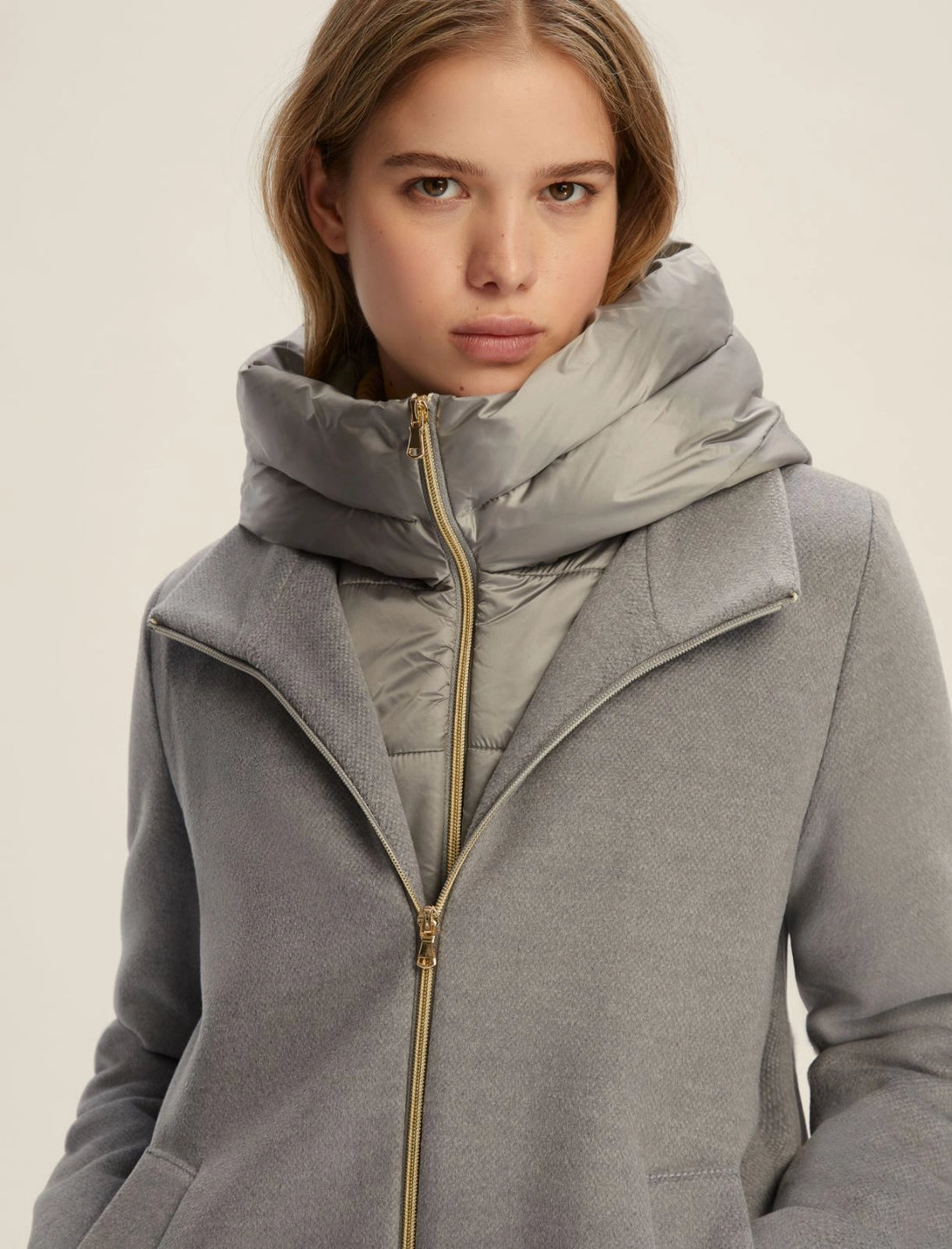 Cappotto in panno doppio unito, con imbottitura trapuntata all'interno Fit semi aderente Scollo con...