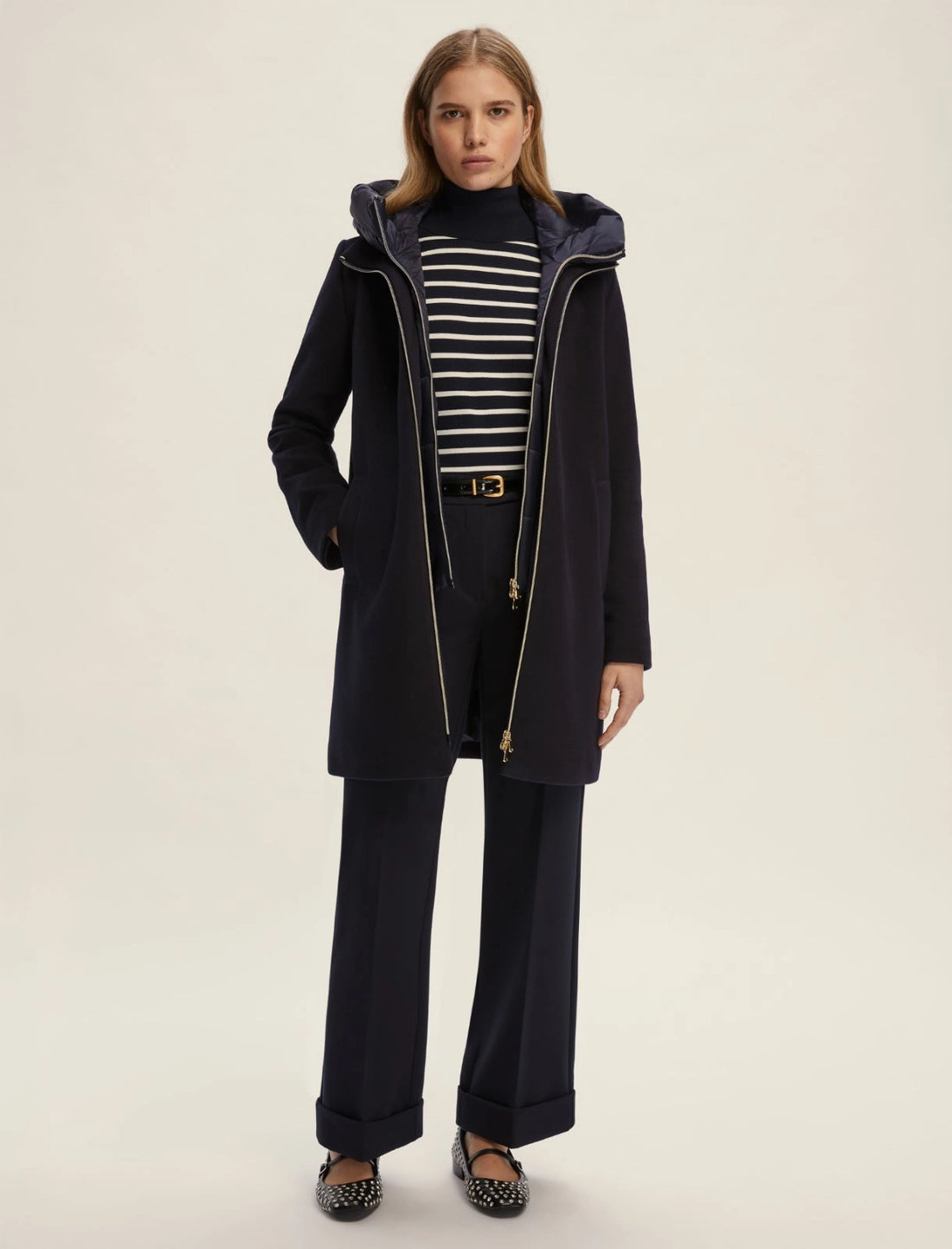 Trench invernale con imbottitura in lana Cappuccio, chiusura con zip e cintura e tasche applicate...