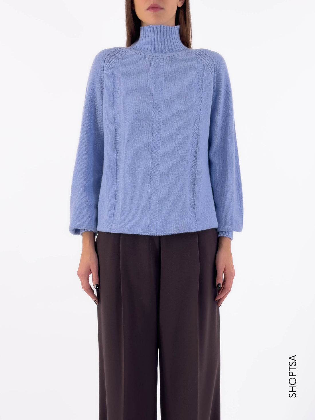 Maglione collo alto in lana cardata Maglia rasata Manica lunga e spalla scesa I fondi...
