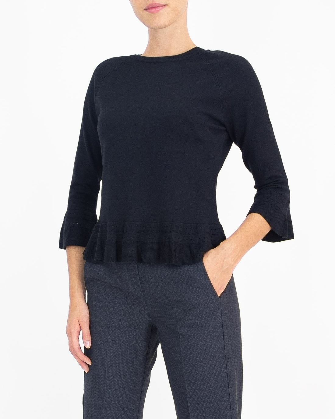 Maglia in morbida viscosa, modello girocollo con manica tre quarti. Dettaglio della balza nel fondo....