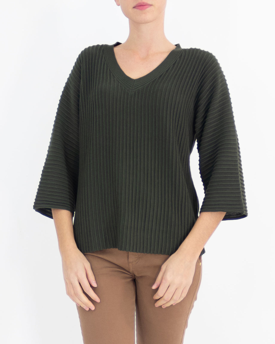 Maglia in morbido cotone Manica a tre quarti ampia Scollatura a V sul davanti Altezza...