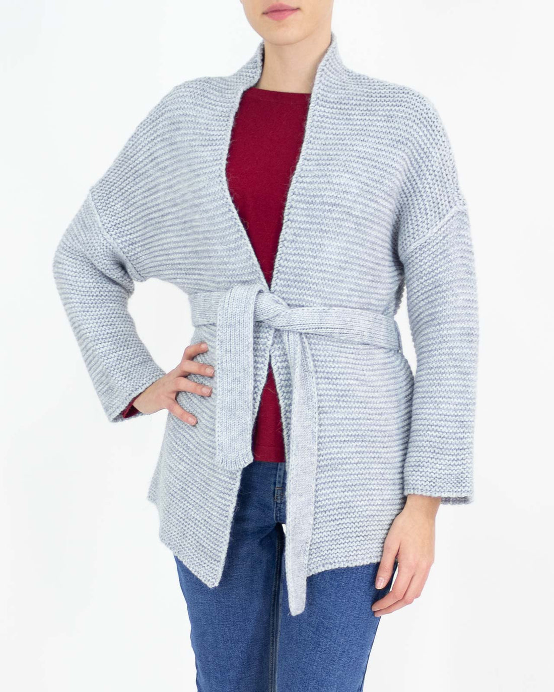 Cardigan in misto lana e alpaca Manica a kimono e cintura coordinata Made in Italy ...