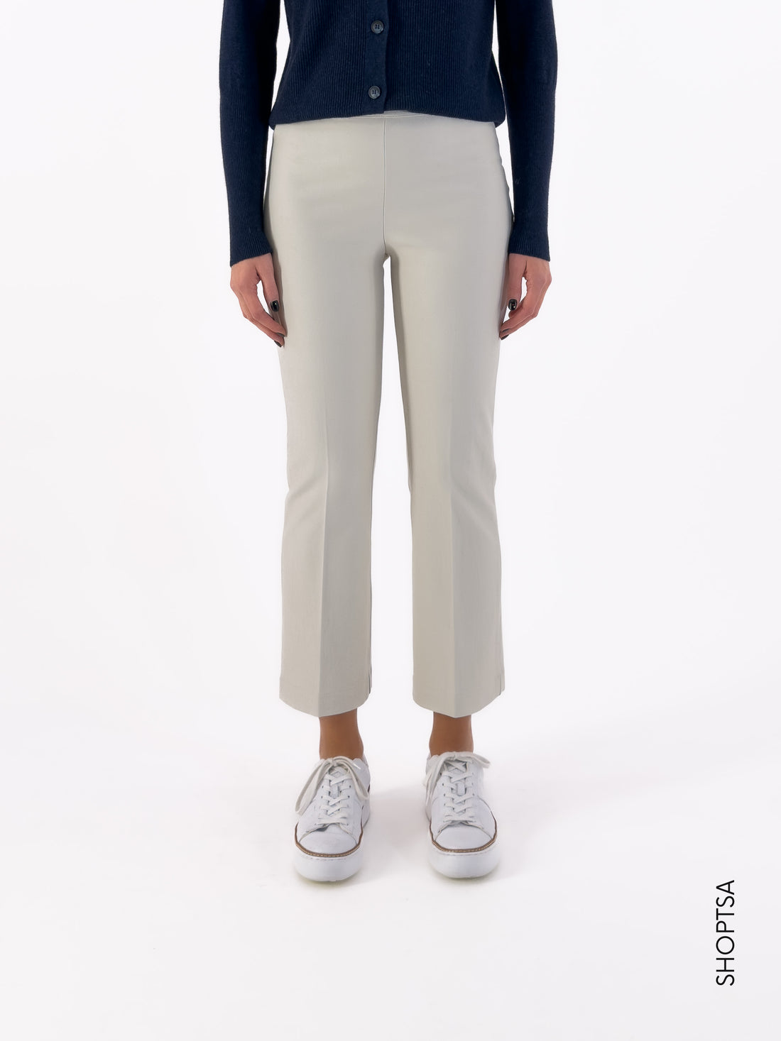 Trousers in compact fabric: an incredibly compact and elastic Milano stitch Trumpet model Elastic waist...