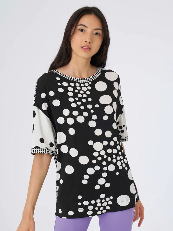Blusa girocollo con maniche corte Le diverse fantasie aggiungono un tocco di freschezza e allegria....