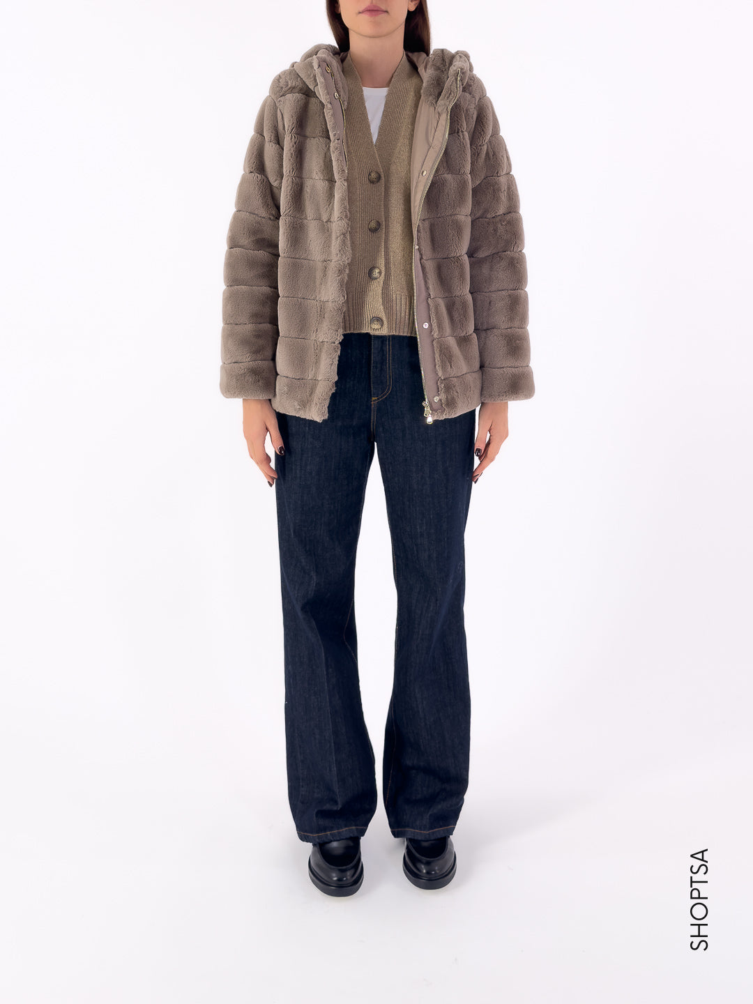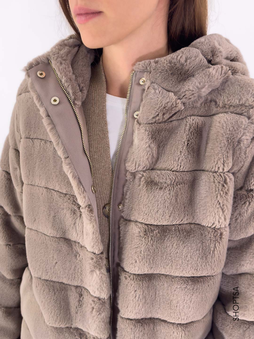 - Giubbino ecopelliccia con cappuccio