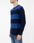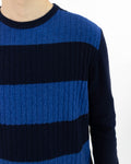 - Maglione in lana girocollo a righe bicolore, con lavorazione treccia