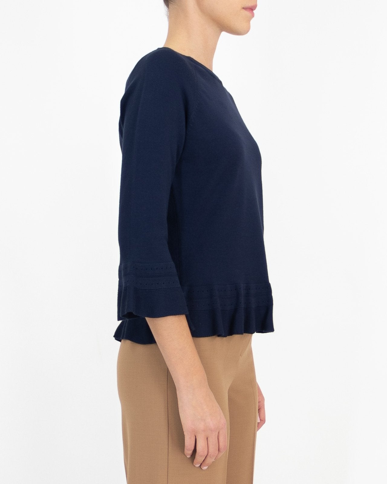 - Maglia in morbida viscosa, modello girocollo con manica tre quarti.