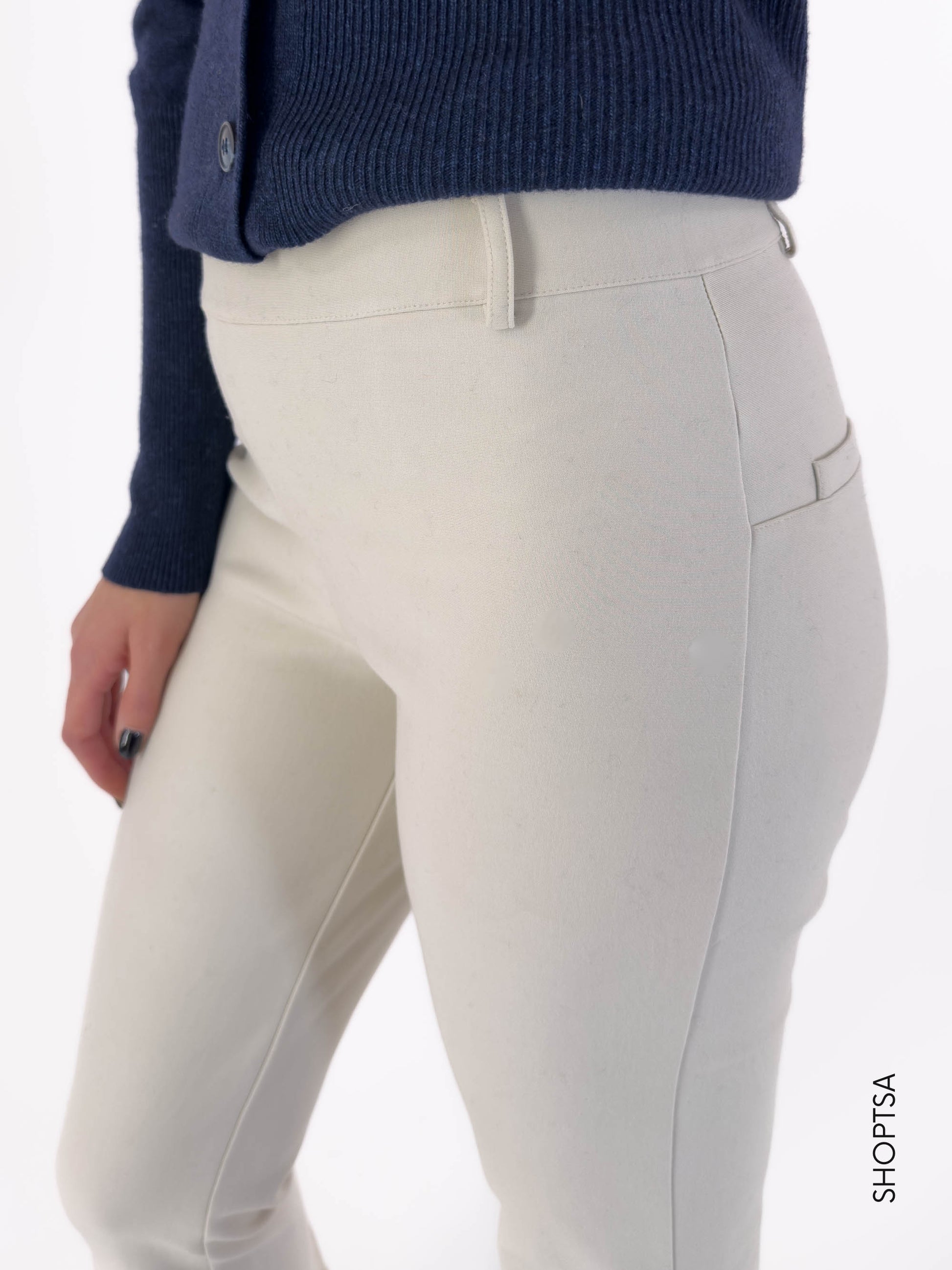 - Senza zip e senza bottoni, solo con vita elasticizzata