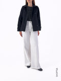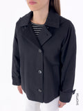 - Chiusura monopetto leggermente spostata con bottoni a vista e alamari ai polsi